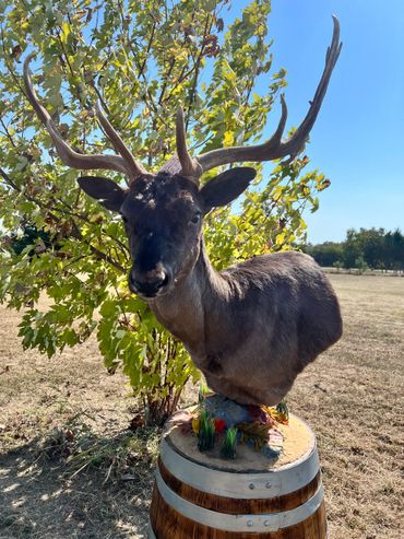 Axis shoulder mount. Pedestal, open mouth, alterations, habitat at an extra charge